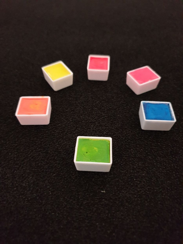 Boite métallique 6 demi-godets d'aquarelles néons